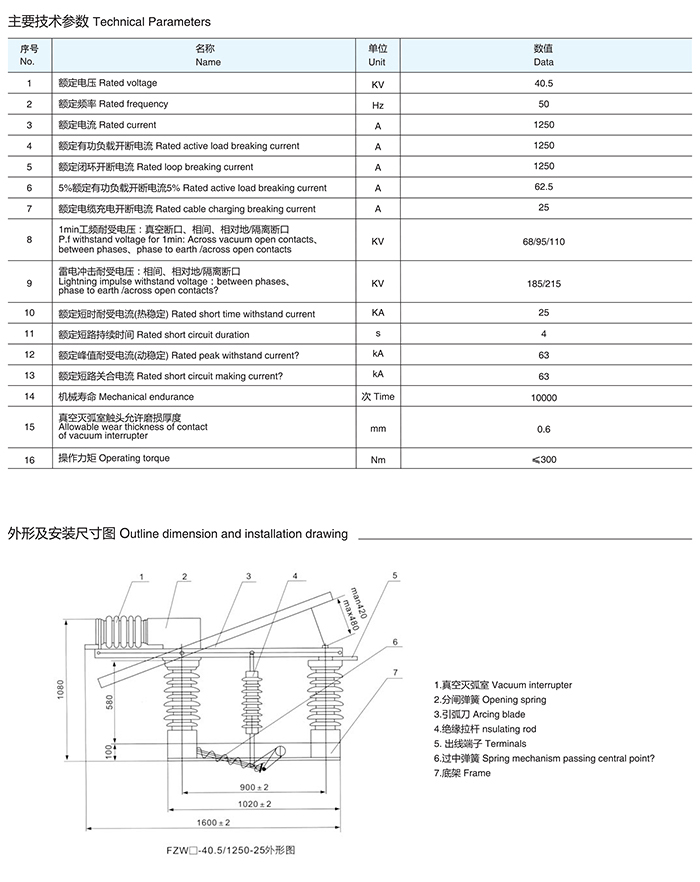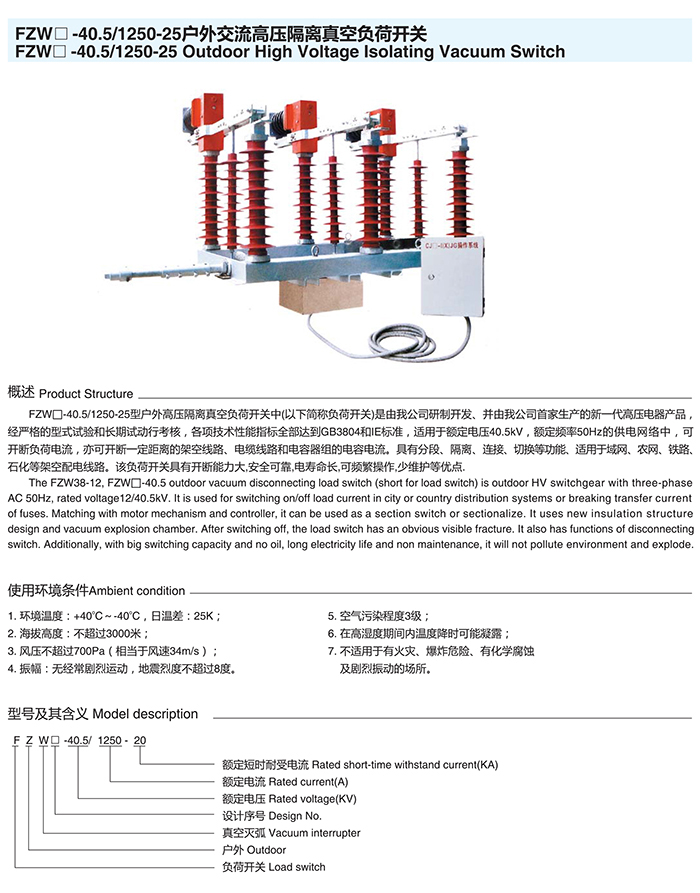FZW□-40.5/1250-25戶外交流高壓隔離真空負荷開關