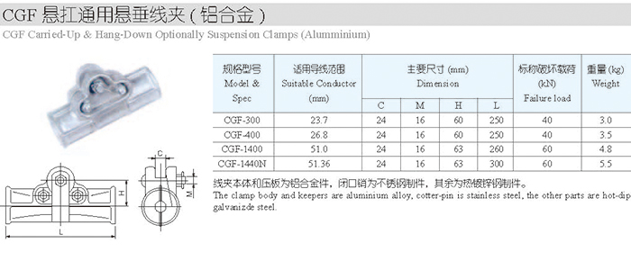 CGF懸扛通用懸垂線(xiàn)夾(鋁合金)