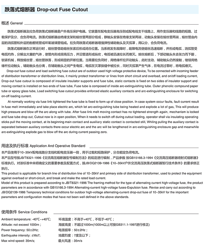 RW9(10)-35、RXWO-35型戶外高壓限流熔斷器