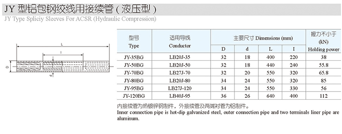 JY型鋁包鋼絞線用接續(xù)管(液壓型)