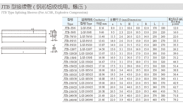 JTB型接續(xù)管(鋼芯鋁絞線用,爆壓)