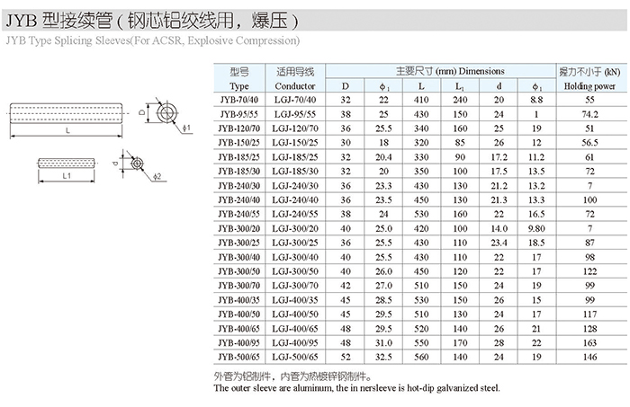 JYB型接續(xù)管(鋼芯鋁絞線(xiàn)用,爆壓)