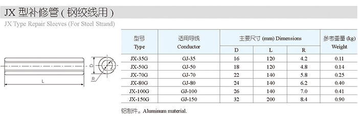 JX型補修管(鋼絞線用)