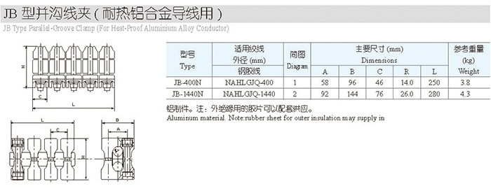 JB型并溝線夾(耐熱鋁合金導(dǎo)線用)