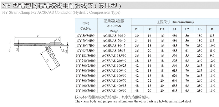 NY型鋁包鋼辛妮娜鋁絞線用耐張線夾(液壓型)
