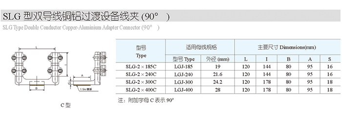 SLG型雙導線銅鋁過渡設備線夾(90°)