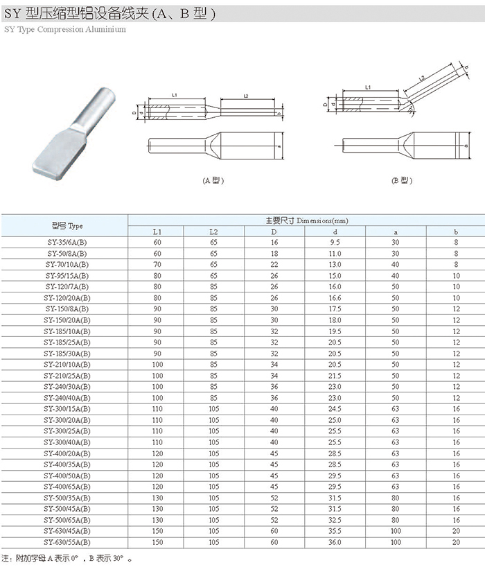 SY型壓縮型鋁設(shè)備線夾(A、B型)