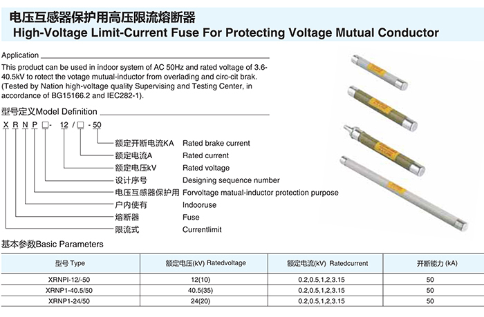 電壓互感保護(hù)用高壓限流熔斷器