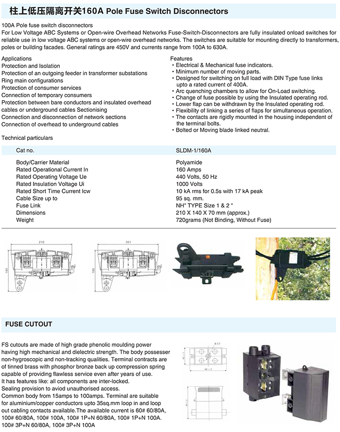 柱上低壓隔離開關(guān)160A